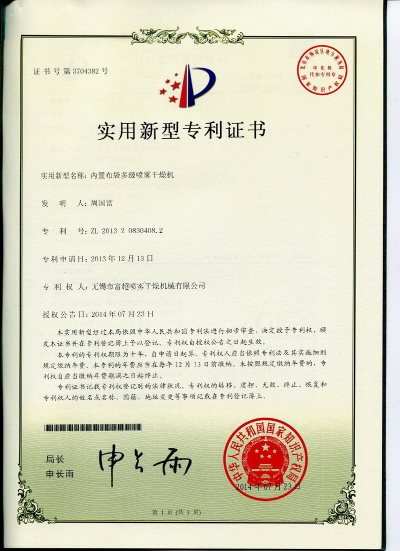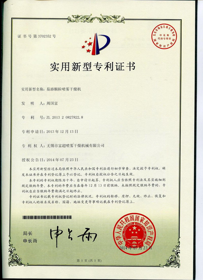 富超干燥公司擁有二十六年的噴霧干燥經驗,目前已有一千多套設備在外運行。(截止2013年數據)
