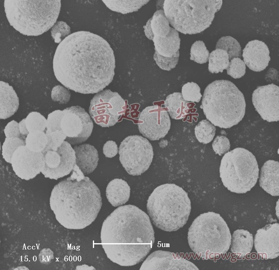一般經(jīng)過噴霧干燥后的電池料還要經(jīng)過氮氣氛燒結(jié),有專家設(shè)想能不能燒結(jié)后的顆粒不再處理粉碎,整形而像在試驗室中一樣直接用,這樣可以少了很多工序,質(zhì)量容易控制。我們這次愛華股份磷酸鐵鋰噴霧干燥調(diào)試一次性成功,達(dá)到了試驗室的粒度要求。并且經(jīng)過SEM照相發(fā)現(xiàn),經(jīng)過十萬倍的放大,不管顆粒多小內(nèi)部組分是均勻的,噴霧干燥中沒有產(chǎn)生偏析,與在我公司的微型透明機(jī)上做出的料差別不大,他們又做了電芯倍率,充放電電曲線等試驗,性能要比用高速噴霧干燥機(jī)生產(chǎn)的要好。